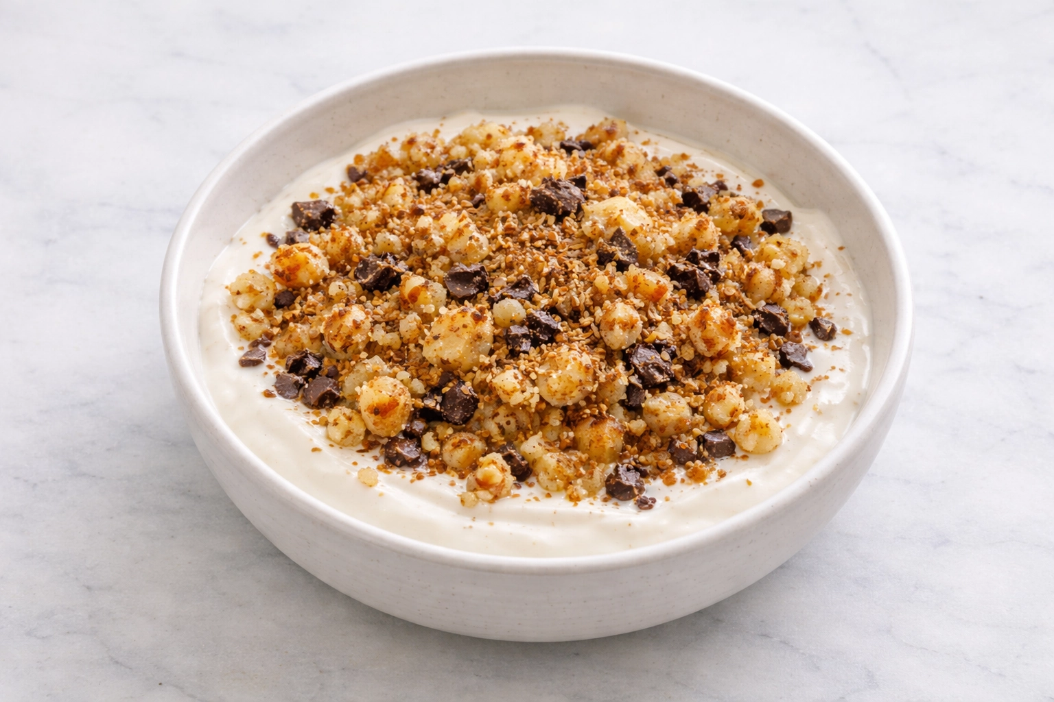 Deze warme banaan crumble bowl combineert romige Griekse yoghurt met een zachte, warme crumble van banaan en ei. Afgewerkt met kaneel, knapperige walnoten, pure chocolade en gemalen lijnzaad voor extra smaak en voedingsstoffen.