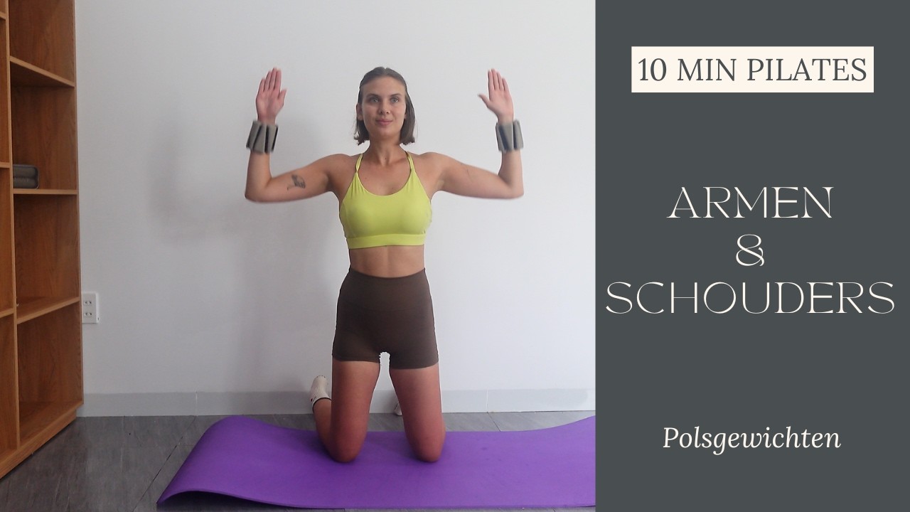 Een 10-minuten Pilates workout voor je armen en schouders, gericht op het versterken en tonen van je bovenlichaam. Optioneel te doen met pols- of enkelgewichten voor extra weerstand.